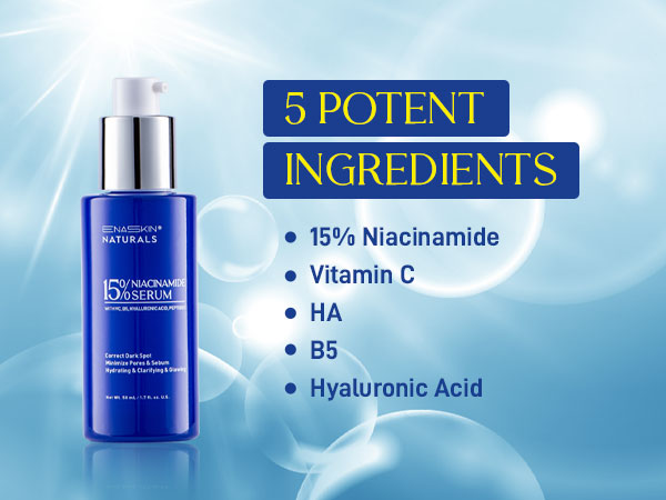 Aclara, unifica y transforma tu piel con una fórmula de corrección avanzada. Enaskin Naturals combina Niacinamida al 15% con Vitamina C y Ácido Hialurónico para reducir manchas oscuras, equilibrar el tono y revelar una piel más luminosa, suave y uniforme desde las primeras semanas.